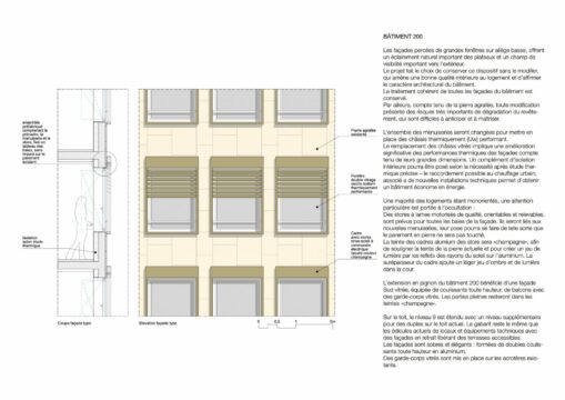 Le démarche de projet s’appuie sur la particularité et les qualités existantes des bâtiments mises en évidence, et sur l’intention de concevoir des logements agréables profitant de la situation. Elle tient compte en même temps des contraintes fortes de l’opération en particulier le délai contraint de réalisation et le budget, de manière à assurer la faisabilité technique et économique et la planning de l’opération.